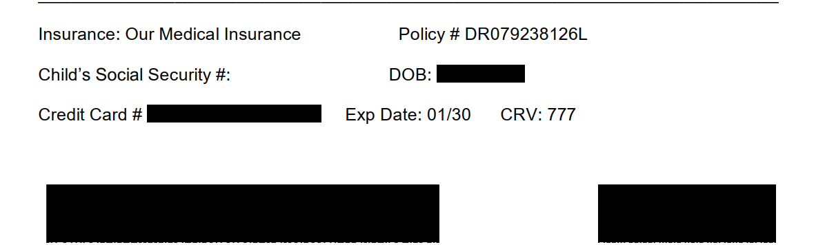 Redaction of Credit Card, SSN, Date of Birth, and Barcodes.