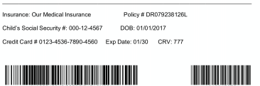 In our source document, we have an insurance form containing sensitive data stored within the barcode |
